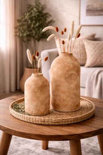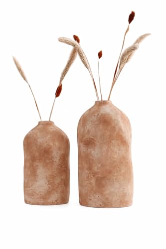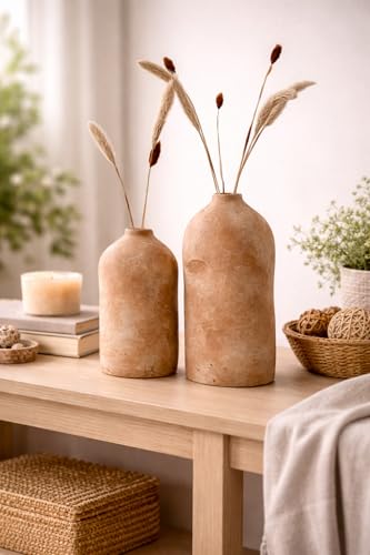 - Handcrafted Artisan Quality: Each vase in this set of 2 is uniquely handmade by skilled artisans using 100% natural clay, ensuring no two pieces are exactly alike