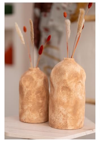 Generic - Calda Soil Set – Unique Handcrafted Organic Pottery Vases, 100% Natural Clay Decorative Vases for Boho, Rustic & Modern Interiors, Artisan Home Decor Collection (Set of 2)