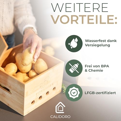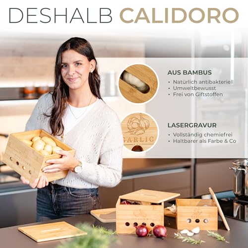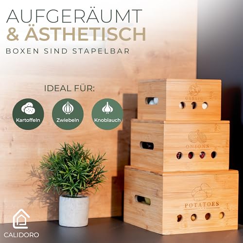 CALIDORO - Potato Storage Box [Set of 3] - Ideal for Fresh Garlic, Potato and Onion Storage - Premium Bamboo Wood Alternative to Onion Pot, Potato Bag