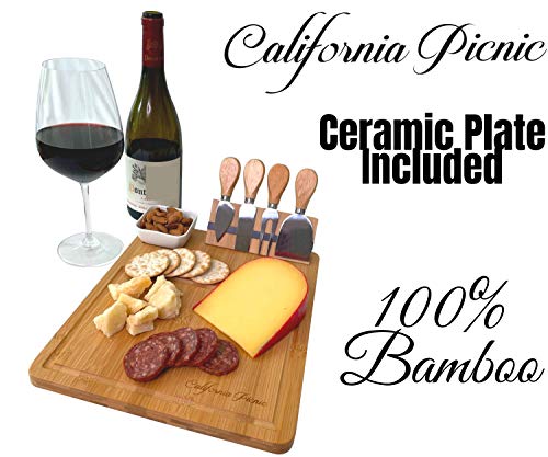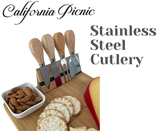 CALIFORNIA PICNIC - CALIFORNIA PICNIC Cheese Board and Knife Set | Wine Board | Organic Bamboo Wood Charcuterie Platter Serving Board Cheese Tray with Cutlery | Perfect for Birthday, Housewarming & Wedding Gifts