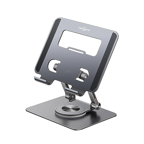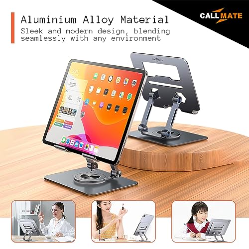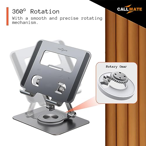 CALL MATE - CALL MATE SwivelTech Tablet Stand for Desk with 360 Rotating Base, Height Adjustable Computer Stand for Tablet Riser, Compatible with All Type of IPad Tablets (Grey)