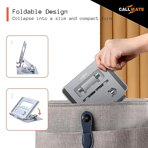 - 【360° Rotation & Ergonomics】: Callmate tablet holder for desk travel is rotatable in 360 degrees, with a rotating base. Our adjustable height tablet stand allows you to swivel your tablet to any angle or height. This elevated tablet stand is designed with ergonomics for iPad and other tablets, elevating your device to eye level to fix your posture and reduce neck and back stiffness.