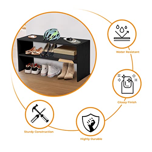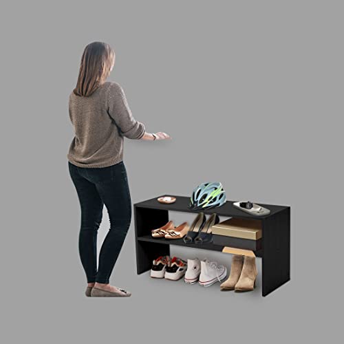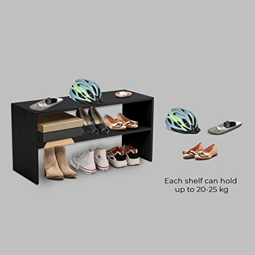 Callas - رف أحذية SR-03 من الخشب بتصميم متعدد الاستخدامات مع رفين لتخزين الأحذية وتنظيم المنزل من كالاس، أسود