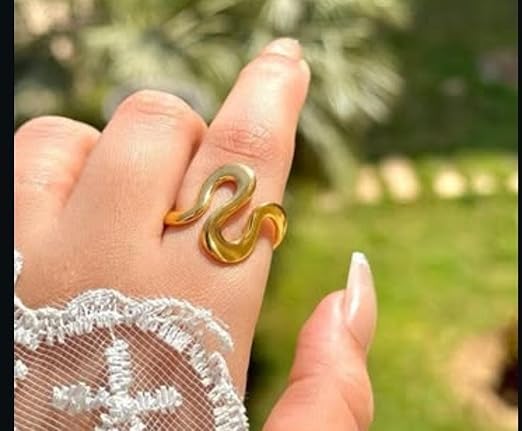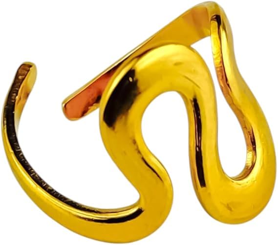 Generic - خاتم مفتوح مطلي بالذهب من كالم فيمينينين بتفاصيل مهمة يناسب جميع المقاسات، ستانلس ستيل نقي 316