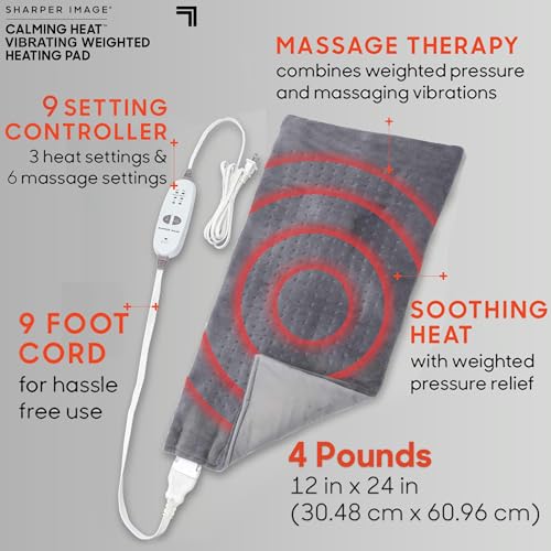 Calming Comfort - وسادة تدفئة ثقيلة للتدليك الحراري من شاربر ايمدج، وسادة تسخين كهربائية بالاهتزاز مقياس 6 - مع 3 مستويات للحرارة و3 مستويات اهتزاز لراحتك المفضلة و9 مجموعات استرخاء، 30 × 60 سم، 1.360 كيلوجرام