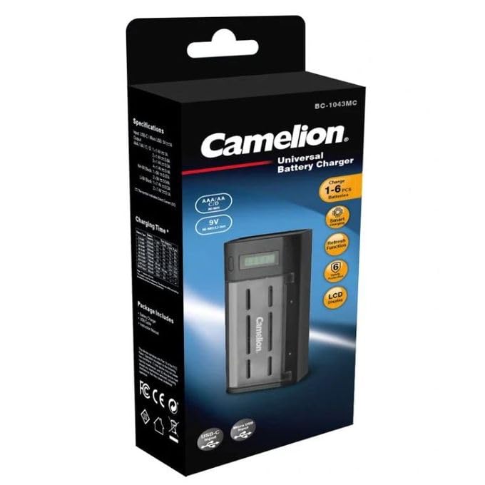 Camelion - Camelion BC-1043MC Universal Charger – Efficient and Reliable Charging for AAA, AA, C, D, and 9V Rechargeable Batteries