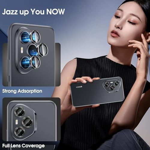 Whats Mob - Camera Lens Frame Glass Metal Compatible with Honor 400 Pro – HD Clear, Scratch Resistant, Anti-Shock, Case Friendly (Black)