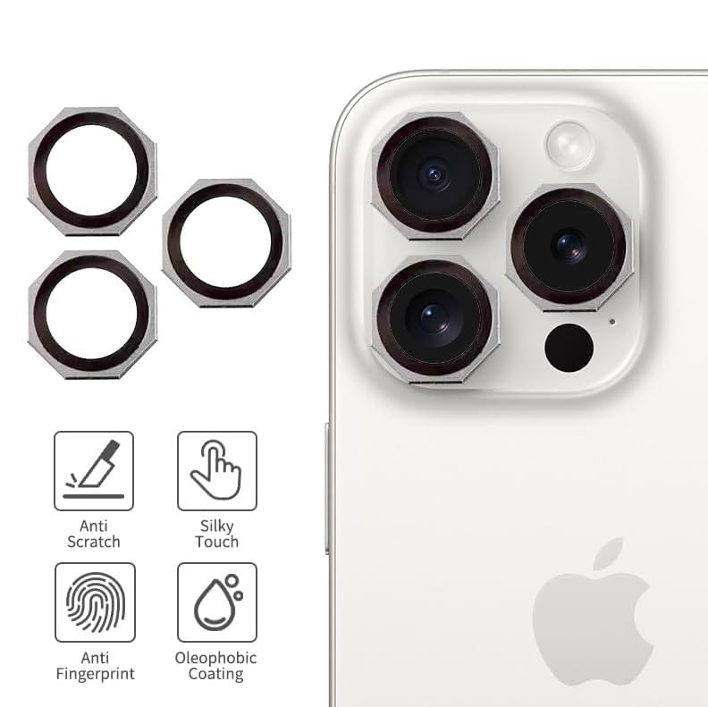 Generic - Camera Lens Protector Compatible with iPhone 17, Hexagonal Design, AR+AF, Glass,Premium Camera Ring Protector – 9H Tempered Glass, Scratch and Shock Resistant.(Silver)