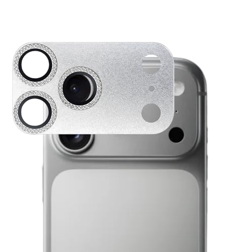 Whats Mob - Camera Lens Protector Compatible with IPhone 17 Pro Max – Full Bling Sparkly Diamond Glass, Glitter Metal Frame (Silver)