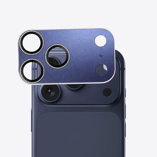 Whats Mob - Camera Lens Protector Compatible with iPhone 17 Pro Max – Full Bling Sparkly Diamond Tempered Glass, Glitter Metal Frame, Dark Blue