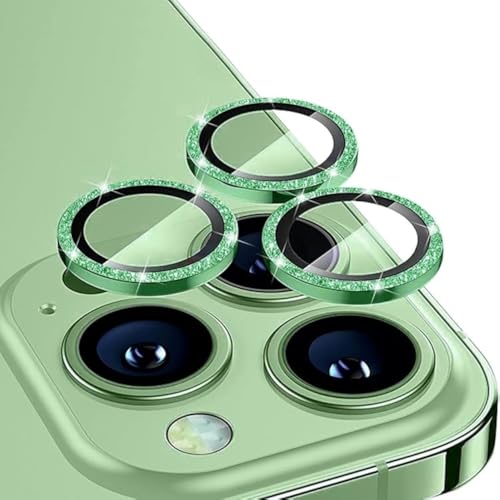 - واقي عدسة الكاميرا لموبايل آيفون 14-14 بلس بدرجة صلابة 9، غطاء من الزجاج المقوى بدرجة صلابة 9، اكسسوارات تزيين حلقة معدنية (أخضر لامع)