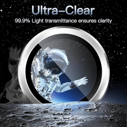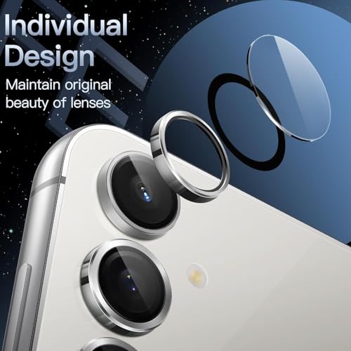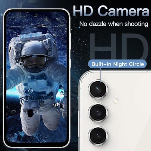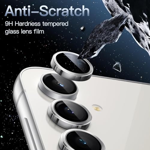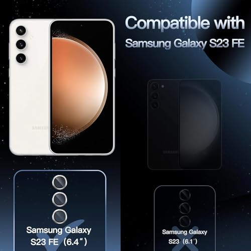 ELMO3EZZ - واقي عدسة الكاميرا لموبايل سامسونج جالاكسي S23 اف اي مقاس 6.4 بوصة، غطاء حلقي معدني من الزجاج المقوى بدرجة صلابة 9، شفاف HD (أسود) (فضي)