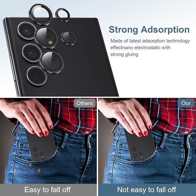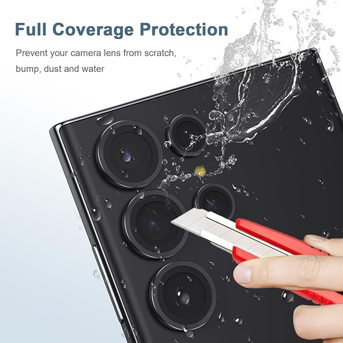 - Premium Protection: Crafted from 9H tempered glass and ultra-thin aluminium alloy, this lens protector offers superior scratch-resistance and impact protection for your Samsung Galaxy S24 Ultra's camera lenses.