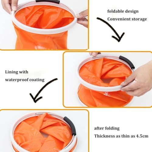 - This foldable water bucket features a robust construction using premium Oxford cloth combined with a waterproof PVC layer, ensuring exceptional durability and leak-proof performance even in harsh outdoor conditions like extreme cold or heat for reliable long-term usage across various environments without compromising structural integrity or functionality during extended periods of heavy use in camping or fishing trips.