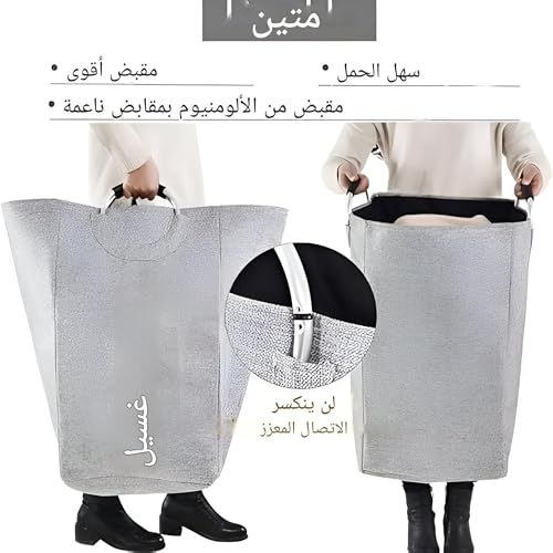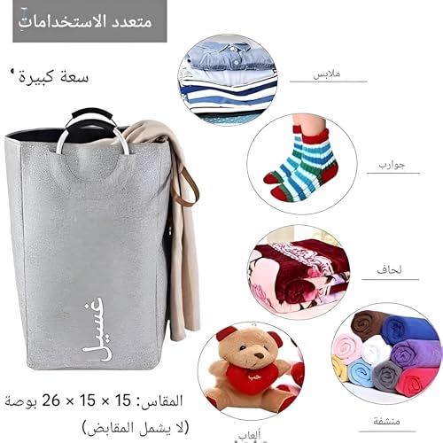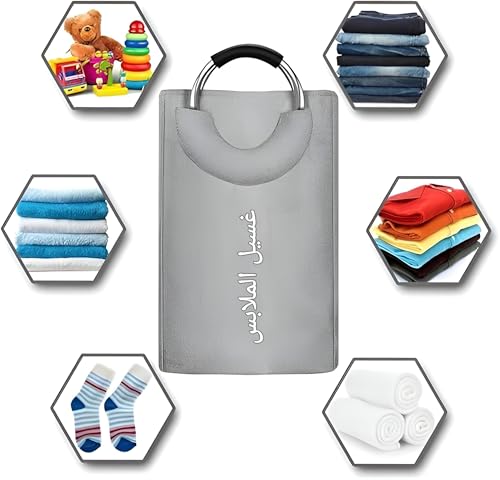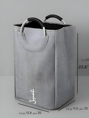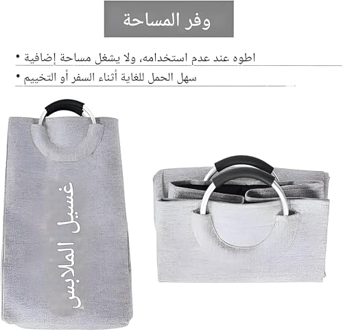 - تتميز سلة الغسيل القابلة للطي بمقابض معدنية قوية، مما يجعلها سهلة ومريحة للحمل حتى عندما تكون محملة بالكامل، مما يضمن لك إمكانية نقلها بسلاسة في جميع أنحاء منزلك أو أثناء الأنشطة الخارجية دون إجهاد يديك أو فقدان القبضة.