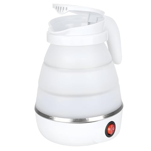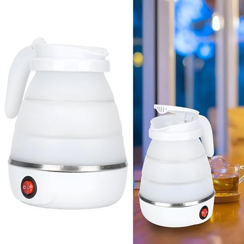 Generic - Camping Tea Pot - Portable 600 ml silicone kettle for outdoor brewing, 400 W, 220 V, white; folds flat for easy pack, rapid boil, auto shut-off safety, ideal for tents, mountain trips, BBQs, durable.