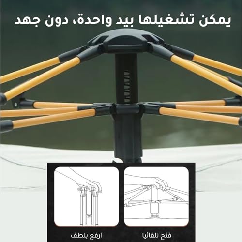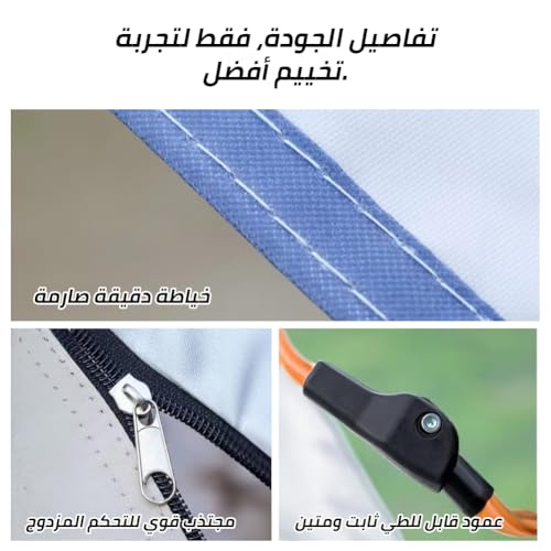 - 【خياطة محكمة، سوستة مزدوجة الرأس】: كل تفاصيل الخيمة مصنوعة بشكل جيد، لن تكون هناك أي مشاكل في الجودة مثل خيام التخييم الرديئة. الأعمدة قوية ومتينة عند الطي، وهناك خطافات في الأعلى، والمكان المتصل بالأوتاد الأرضية يستخدم تصميم زر الكبس، وهو قوي وثابت ضد الرياح والمطر. السوستة مزدوجة الأطراف ناعمة للغاية وسهل الدخول والخروج.