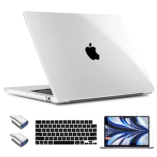 CAMPLALA - جراب صلب وغطاء لوحة مفاتيح وواقي شاشة ومحول او تي جي لجهاز ماك بوك اير 2023 15 بوصة موديل A2941 M2 A2179 A1932 من كامبلالا، لون شفاف لامع