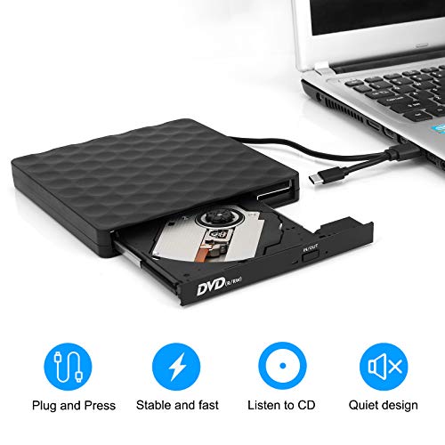 - 【قارئ أقراص سي دي خارجي】- يعمل محرك الأقراص المضغوطة الخارجي هذا بمنفذ USB. لا حاجة لمحرك خارجي أو طاقة. فقط قم بتوصيله بمنفذ USB الخاص بك وسيتم اكتشاف محرك DVD.