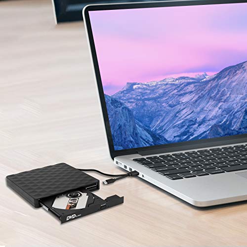 CAMRILEND - محرك أقراص DVD خارجي، مشغل اسطوانات بمنفذ USB نوع C3.0، مشغل أقراص DVD مزدوج المنفذ، متوافق مع ويندوز XP/7/8/10، MacOS، لينكس لماك بوك واللاب توب والكمبيوتر المكتبي (أسود) من كامريليند