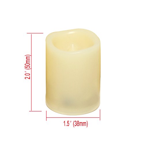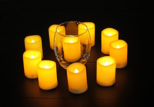 - Realistic look and flicker. These top quality battery votive candles / tea lights are made of flickering LED bulb and plastic with real wax appearance. The small resin candles flicker like real candles and give off soft glowing light.