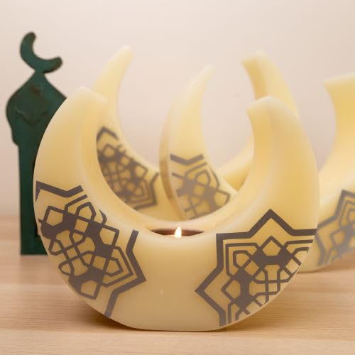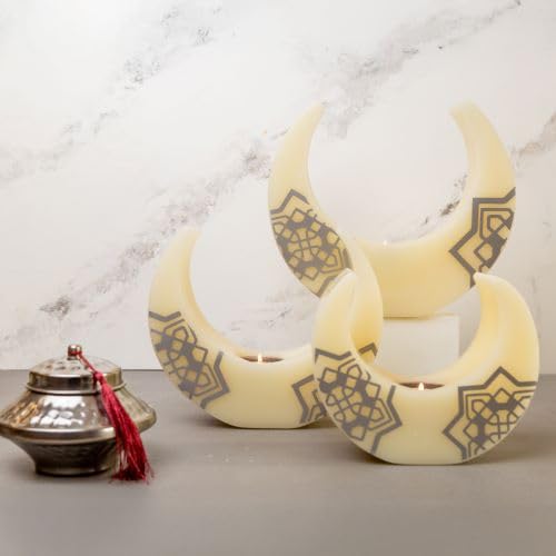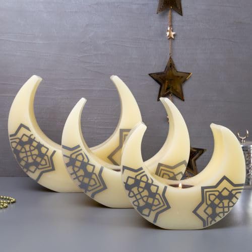 Candle Connection - شمعة زينة من الفينيل بتصميم هلال وقمر ونجمة فضية وتيلايت من كاندل كونكشن - عرض 20 سم × ارتفاع 16 سم