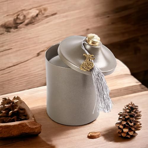 Candle Connection - Scented Candles Pyramid Shaped Cover Fresh Linen & Amber Scent Metal Cup Candle, 13 cm Height x 8.5 cm Diameter Size, Greige