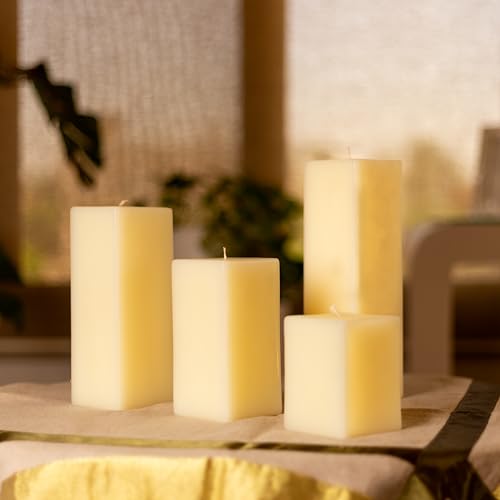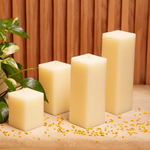 Candle Connection - Unscented Square Pillar Candle, 7.5 cm Length x 7.5 cm Width x 20 cm Height Size, Off White