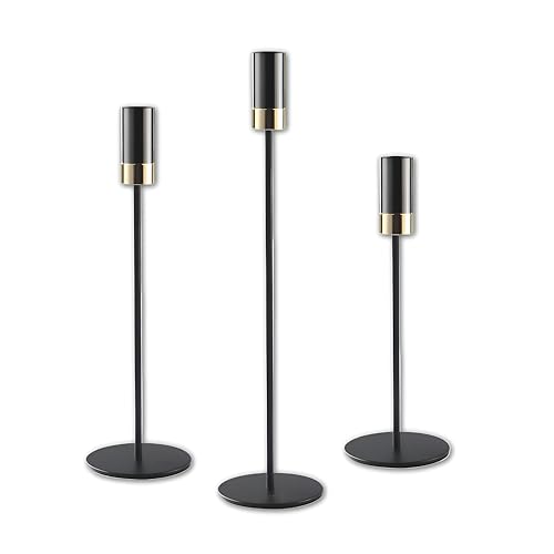 - This candlestick set of three pieces features a luxurious design crafted from durable black and gold alloy, ensuring both strength and elegance. A balanced mix of premium materials makes it suitable for long-term use, while its high-foot design adds a striking visual effect to any room or event setup.