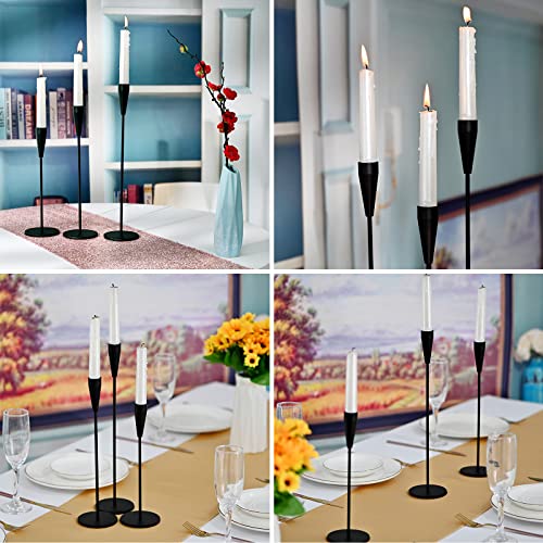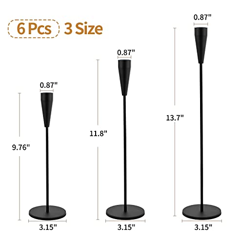- 🎁Package Includes: You will receive 6 pieces of black candle holders (without candles). There are 3 sizes of taper candle holders, each 2 of which are large, high: 13.7", medium: 11.8", low: 9.76", candlestick base length is 3.15", opening of the candle holder: 0.9 inch, suitable for 3/4 inch candles and LED taper candles.