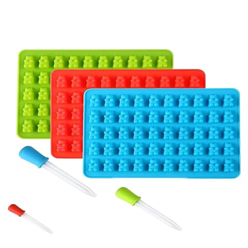 Generic - Candy Molds - Bear-Shaped Silicone Set with 50 Holes and Dropper for Easy Chocolate and Gummy Treats (3 piece of the color shown)