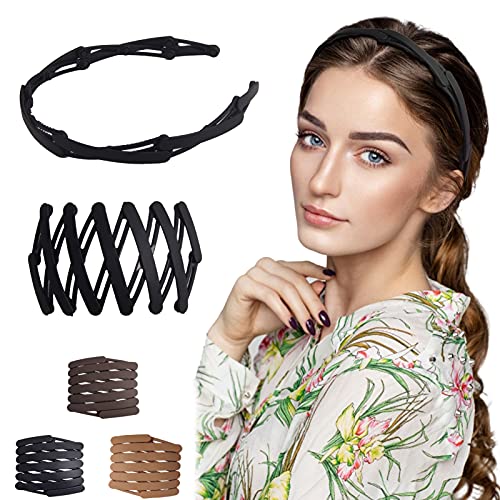 Candygirl - طوق رأس مدمج قابل للطي والسحب، طوق رأس عتيق مقاوم للانزلاق، طوق شعر بسنون قابل للتعديل، محمول للسفر من كاندي جيرا، اكسسوارات شعر 3 قطع