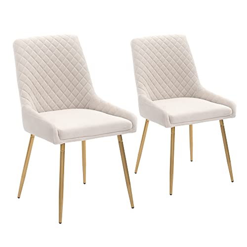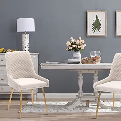 CangLong - CangLong Mid-Century Velvet Dining Chairs with Dark Walnut Wood Finished, Metal Legs,Set of 2,Beige