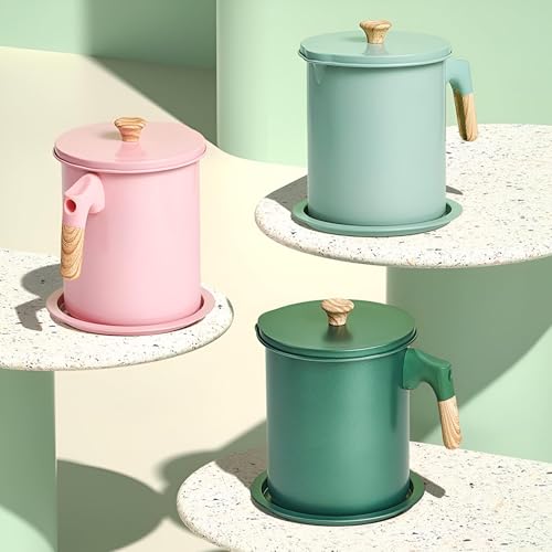 Generic - Canister - Practical canister with mesh strainer lid and spout, made for collecting bacon fat or frying oil, ensuring safe storage and easy pouring in the kitchen (3 piece of the color shown)