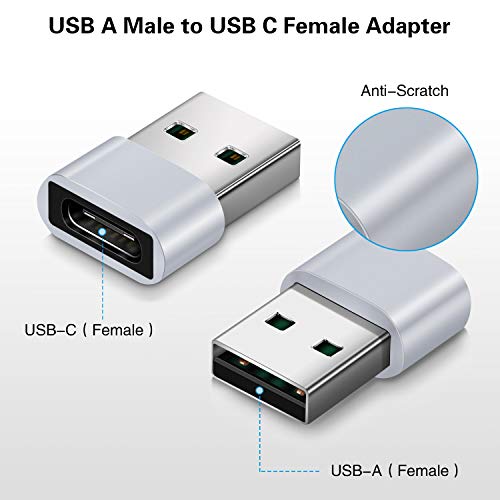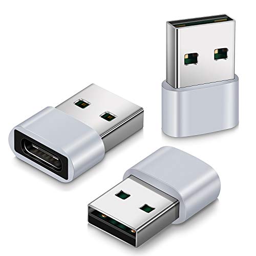 Canjoy - Canjoy USB C Female to USB Male Adapter, 【3 Pack】 USB 2.0 to Type C Charger Adapter, USB A to USB C Converter Compatible with iPhone, Samsung Galaxy, Google, Laptop and More USB A Port Device (Silver)