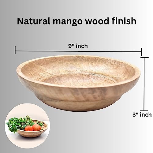 CANOGLOO - Mango Wood Serving Bowl Multipurpose Snacks Bowl Bowl for Decoration Salad Bowl for Table Decor Kitchen Bowl Wooden Gift Item Bowl Set for Kitchen Table 9" inch Bowl