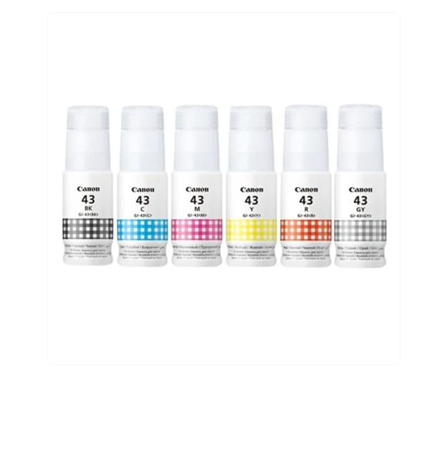 - Canon PIXMA GI-43 Set Of 6 Pieces Ink Bottle set (BK, C, M, Y, R, GY)