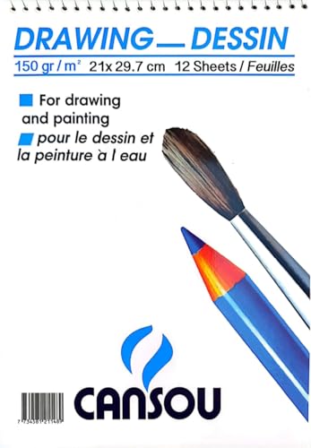 Cansou - كراسة سكيتش بسلك، 150 جرام، مقاس A4، ورق أبيض، 12 ورقة، متعددة الألوان، من كانسو