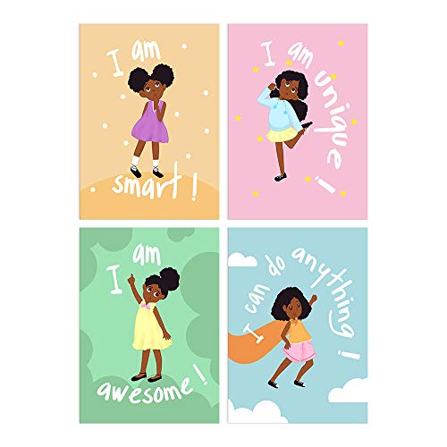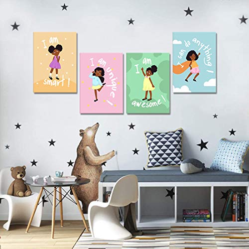 - 👧🏾 CANVAS SIZE - 8 x 12 inches x 4 Pcs (20x30 cm x4). Cute Black Girls with Motivational Words Pictures printed on 4-panel canvas.