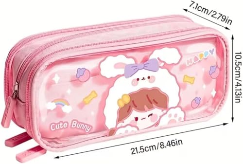 Generic - Canvas Large Capacity Transparent Pencil Pouch Cute Bear Cartoon Print Three Compartment Aesthetic Organizer Multifunctional Stationery Storage Case Durable Zipper Design
