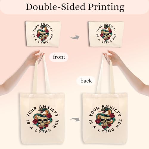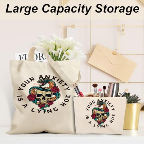 jealance - شنطة يد كبيرة توت 1100 قماش للشاطئ بجيب داخلي، أكياس تسوق بقالة قابلة لإعادة الاستخدام مع شنط مكياج للنساء