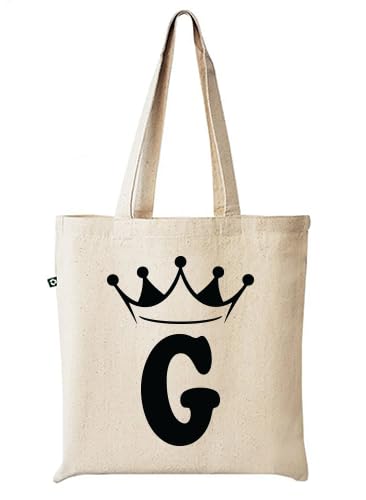 Generic - Canvas Tote Bag with Crown Letter (G) Print, Natural Cotton, Long Handles