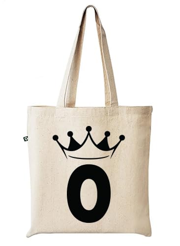 Generic - Canvas Tote Bag with Crown Letter (O) Print, Natural Cotton, Long Handles