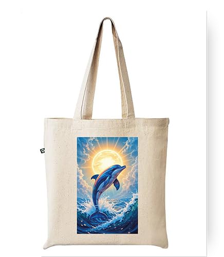 Generic - شنطة يد كبيرة توت قماشية بطباعة فنية دولفين اوشن صن رايز، لون طبيعي