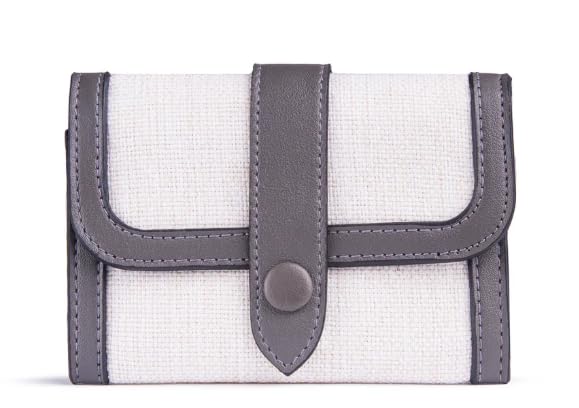 - DESIGN FEATURES: Elegant tri-fold wallet crafted with durable canvas material and complemented by sophisticated grey leather trim accents