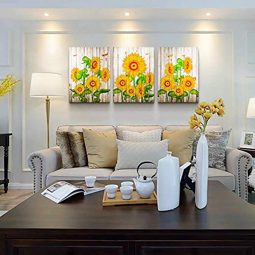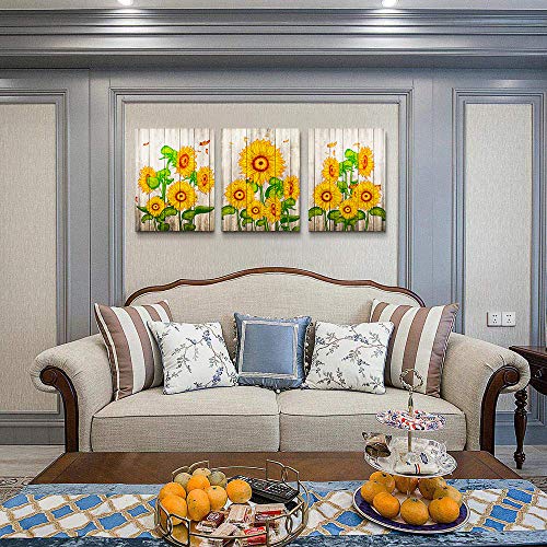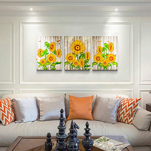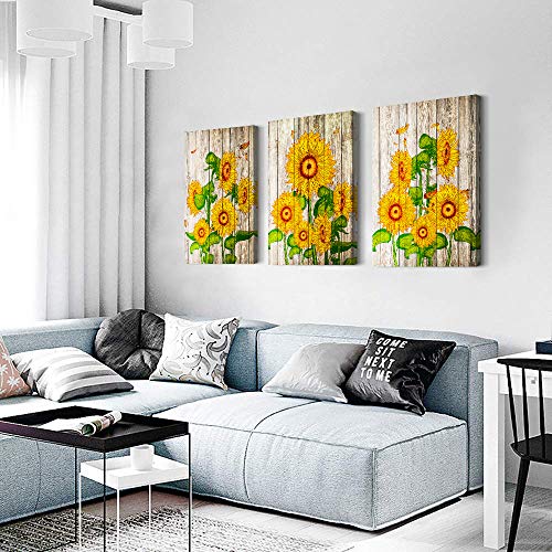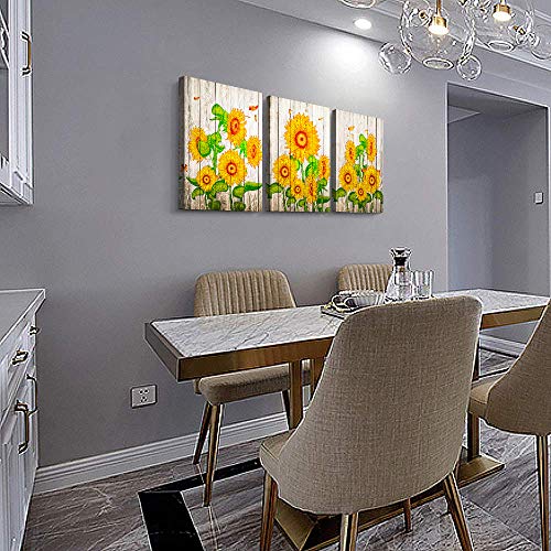 TTHWALLART - Canvas Wall Art for living room bathroom Wall Decor for bedroom family kitchen farmhouse Canvas painting artwork office Retro Yellow sunflower flowers wall pictures Home decorations 16" x 24" 3 Pieces