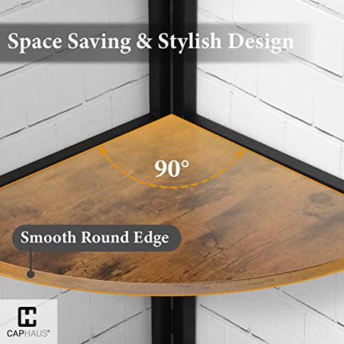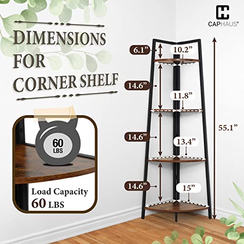 CAPHAUS - رف حامل زاوية طويل من كابهاوس، أرفف عرض من 4 طبقات، رف كتب خشبي للزوايا مزود بإطار معدني، وحدة رفوف متعددة الاستخدامات للمنزل والمكتب، لون خشب البلوط الريفي