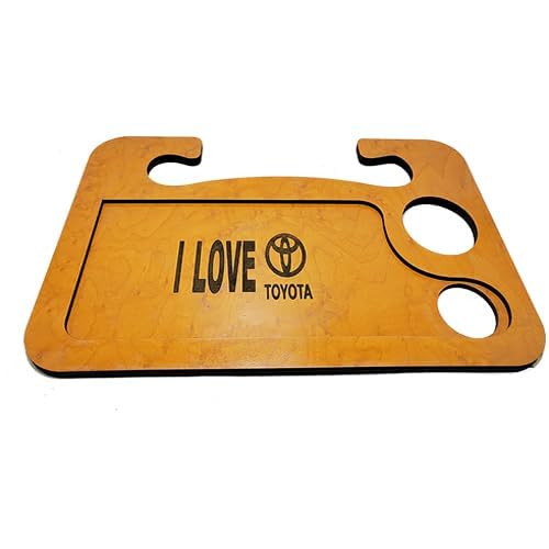 Generic - صنية طاولة طعام ومشروبات ومتعلقات خشب للسيارة متعددة الاستخدامات استاند ماكولات واستاند لابتوب - حفر ليزر اى لاف تويو؟؟تا - طول 42 سم عرض 26.5 سم ارتفاع 10مم - من كابر تريد