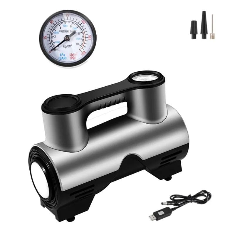 - تصنيف الوظيفة: ضاغط تردد ثنائي الأسطوانة، قوة الإرسال: طريقة التبريد الكهروديناميكية: ضاغط هواء مبرد بالهواء بتيار مستمر 12 فولت، أقصى ضغط (10.3 بار)، تيار مصنف، 85 لتر/دقيقة، مع 6 مصابيح بإضاءة ليد لوظيفة الفلاش، سلك الكهرباء: -سلك بطول 3 متر مع مشابك بطارية، طول الخرطوم: 5 متر من البولي يوريثان، محول بـ 3 فوهات، قم بتوصيل سلك الكهرباء في ولاعة السجائر ثم قم بتشغيل المحرك وتشغيل المفتاح. حافظ على تشغيل المحرك بينما يعمل ضاغط الهواء على تعزيز الطاقة. ضاغط هواء ومنفاخ لإطارات السيارات والكرات الرياضية وإطارات الدراجات والمراتب الهوائية والعوامات وأكثر من ذلك، استخدم الجهاز لأغراض أخرى غير تلك المصممة له.