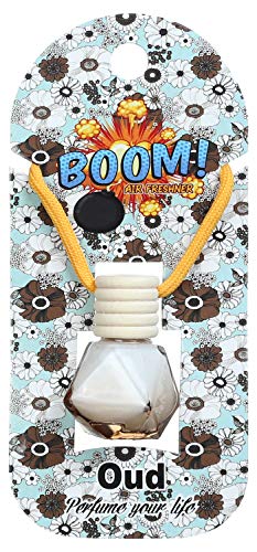 BOOM - Car Air Freshener on Mirror with Fragrant oils with Wooden Diffuser Lid , Oud , Brown